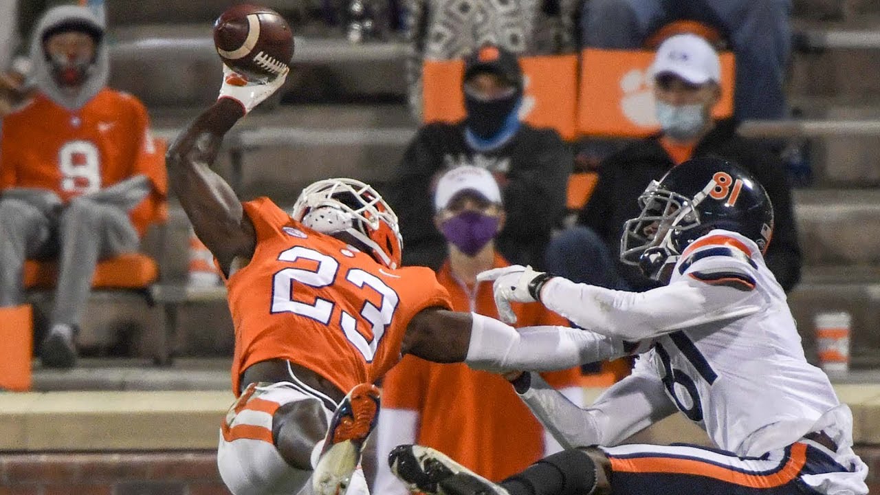 I’ve seen some draw comparisons to one of this year’s draft crushes Jaycee Horn because of his aggressiveness, ability in press, and grabby-ness at times. Here’s a clip from Matt Alkire showing his aggressiveness: