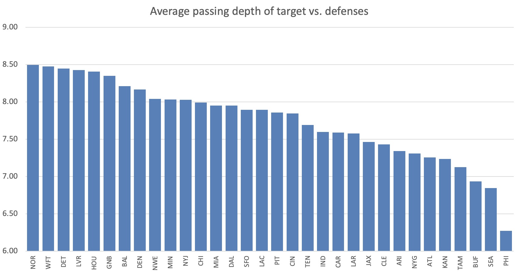 I’m not as negative on Gannon as many. The off coverage drove me nuts, he refuses to play dime even though our linebackers were so weak, and and the personnel was not always used to their strengths despite that being the core coaching philosophy entering the season. But the Eagles did limit explosive plays, 5th best in the league in allowed explosive play rate, and forced - by far - the lowest depth of target on pass plays. It is actually the lowest of any defense over the past 3 seasons. Just look at how much lower the Eagles average depth of target was than the rest of the league in 2021 - they aren’t even close to Seattle, the next lowest team: