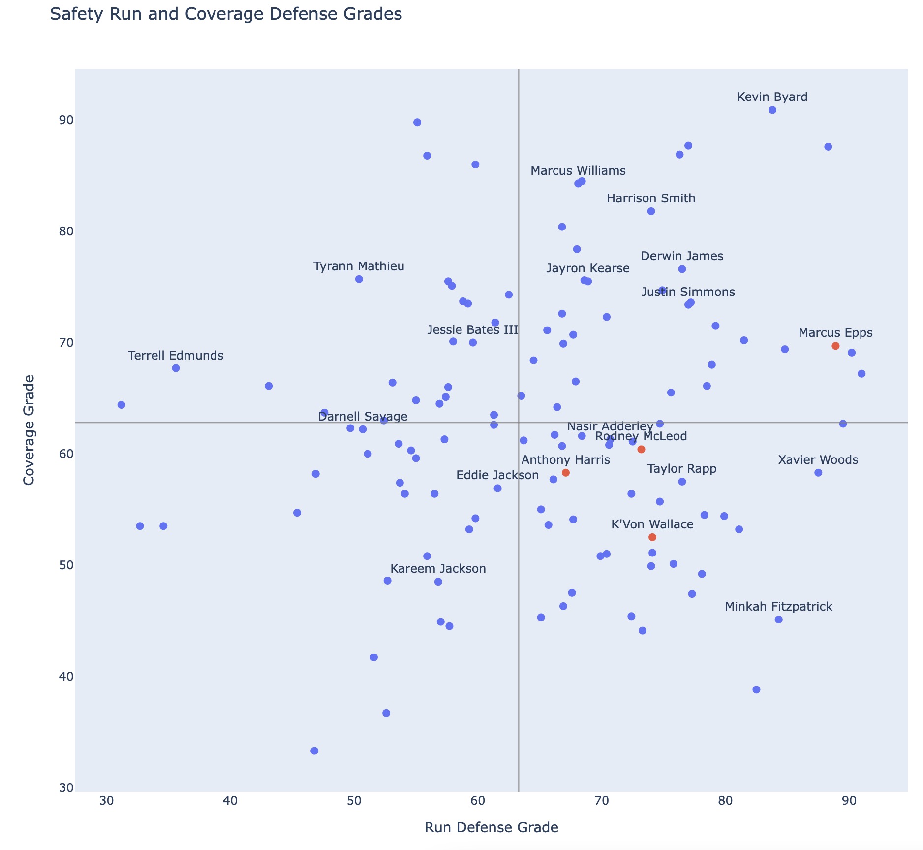 The issue is how proven the group is. It can absolutely be upgraded and the Eagles need to invest here, but there is some room for optimism. Below shows safeties with their run and coverage grades for the 2021 season - Epps in over 500 snaps showed a lot, grading above average against the pass and run.