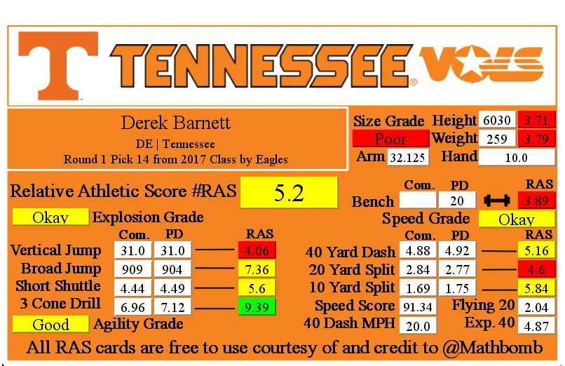 and compare it to the Eagle’s first-round pick, Derek Barnett, in 2017